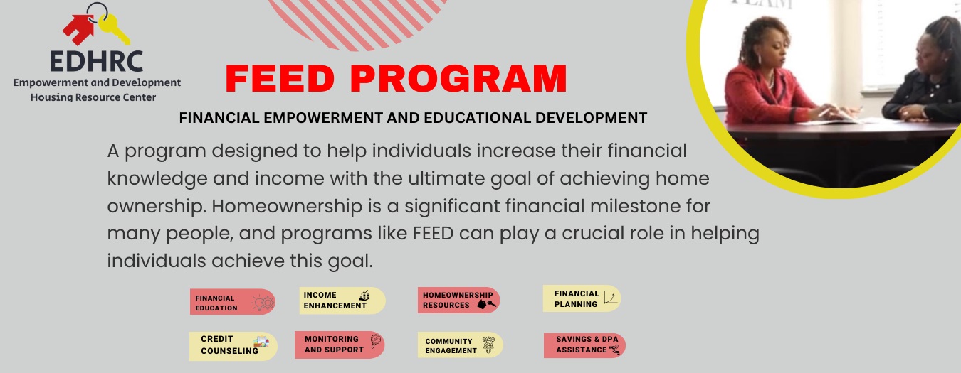 The FEED program, which stands for Financial Empowerment and Educational Development, is a program designed to help individuals increase their financial knowledge and income with the ultimate goal of achieving home ownership. Homeownership is a significant financial milestone for many people, and programs like FEED can play a crucial role in helping individuals achieve this goal. The program key components and objectives include: